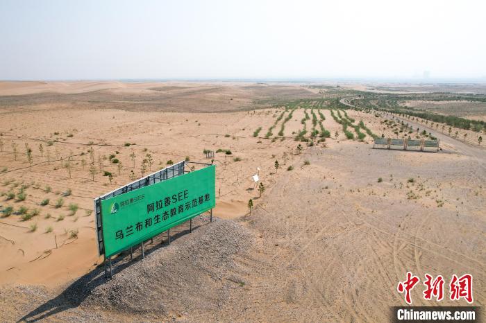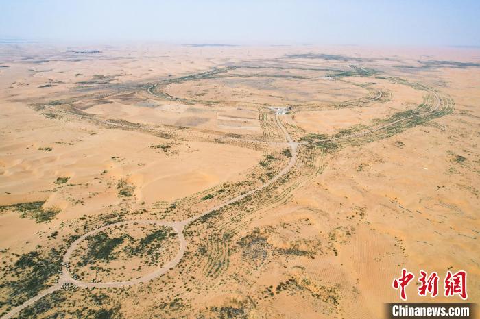 5月25日,航拍內蒙古阿拉善烏蘭布和生態教導示范基地。(無人機照片)中新社記者 張祥毅 攝